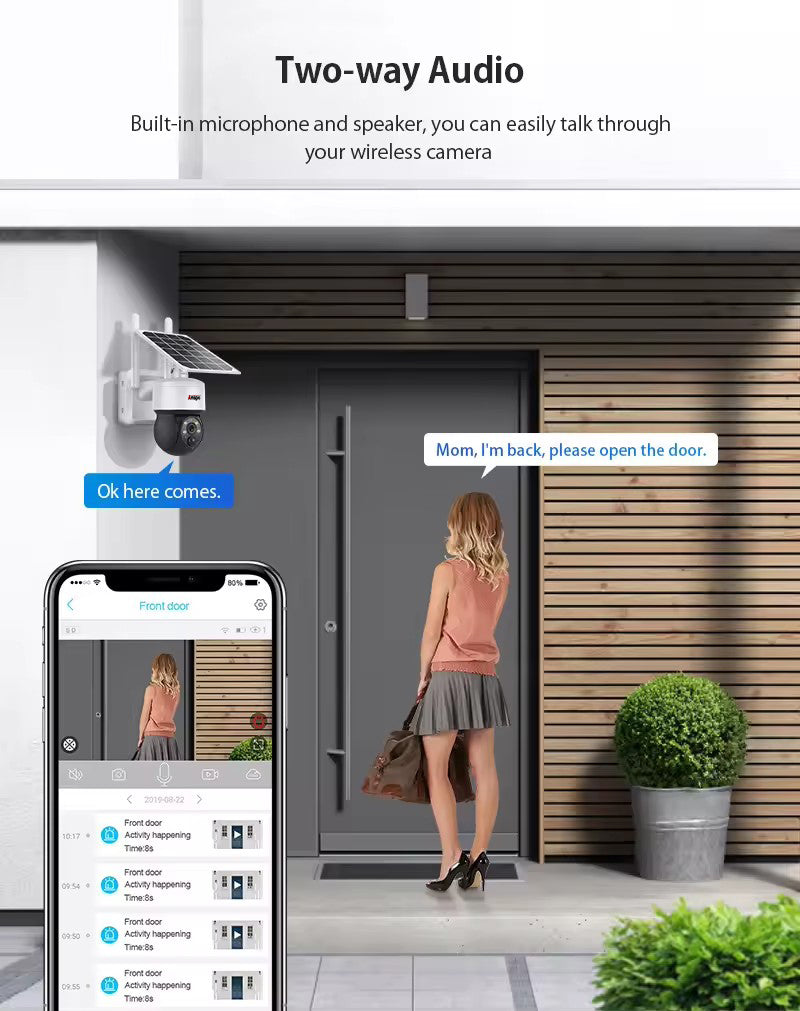 security camera built in rechargeable batteries, last for 6 months with solar charging.