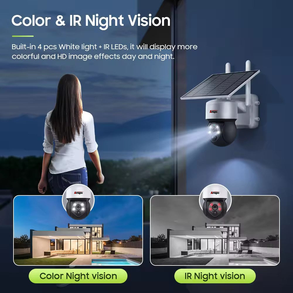 Anspo 4G SIM SOLAR security camera wireless free batteries and 64GB card White