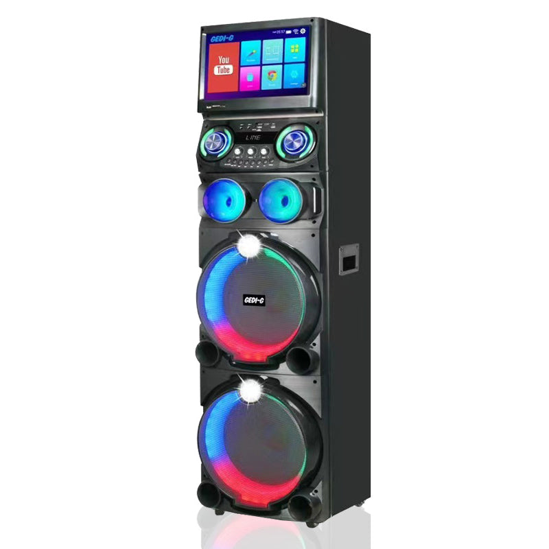 Built in Touch Screen Pad, All in one Karaoke machine, Bluetooth party box speaker, 12" bass x 2. Come with 2 x wireless microphone.