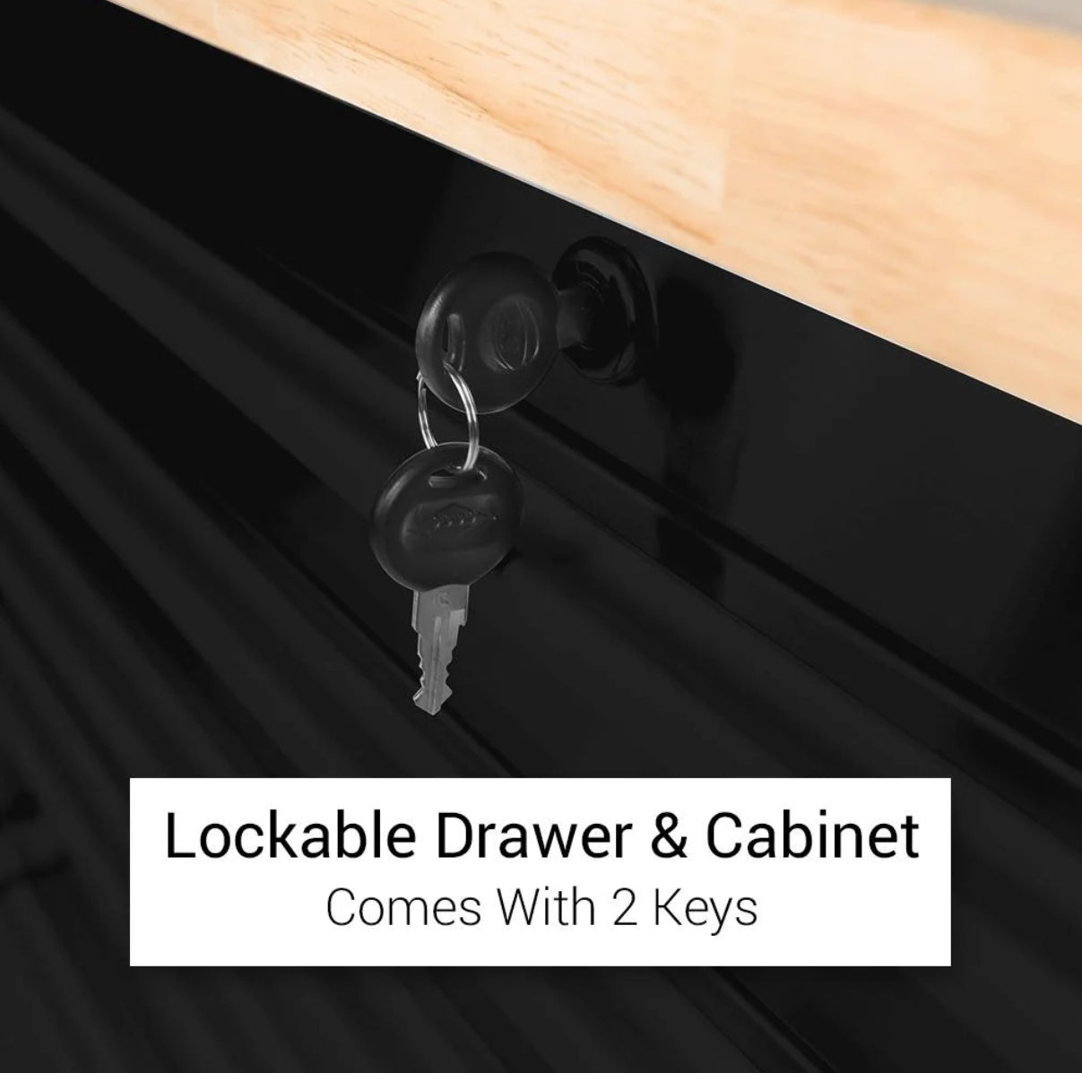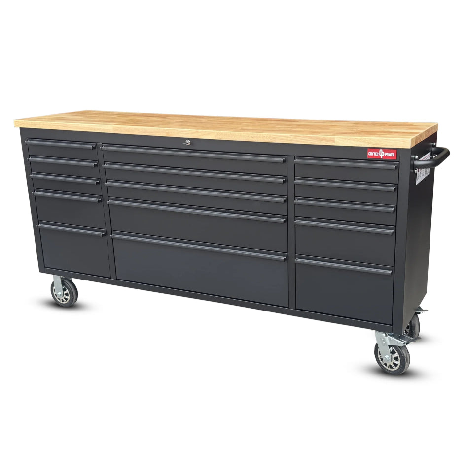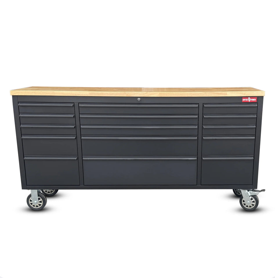 72 Inch 15 Drawers black Tool Chest workbench with wooden top