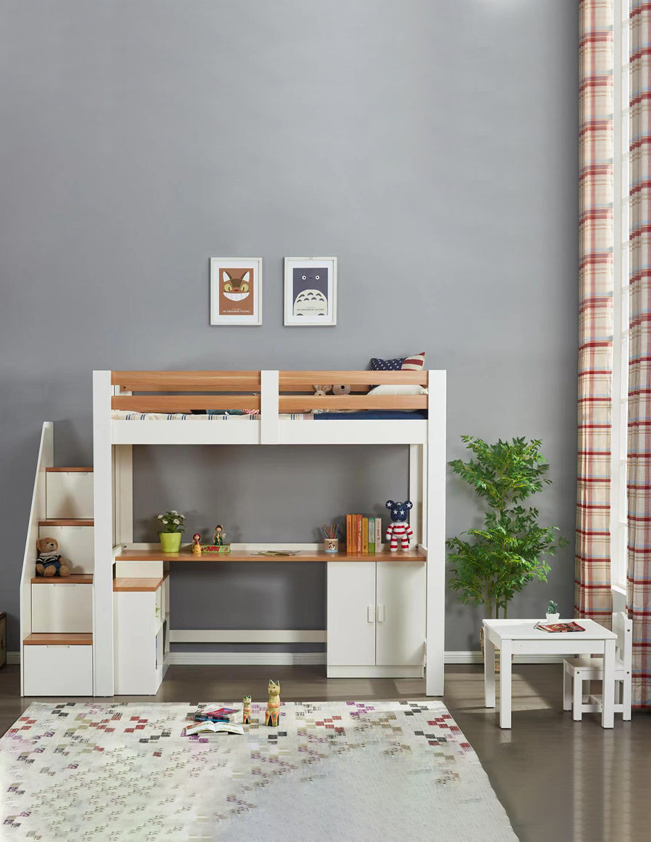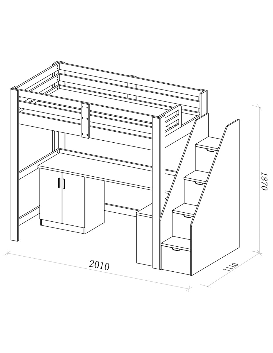 Loft bed and desk set with mattress. Material: pine wood + MDF overall size: 2010(L)*1110(W)*1870(H)mmInner size:1910*920mm Mattres size: 1900*900mm MattressSponge... Read more