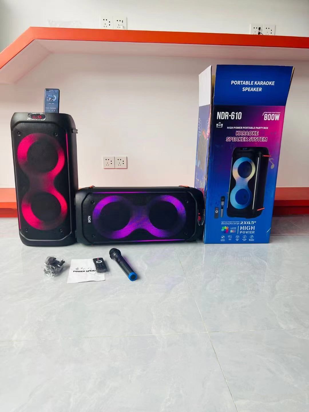 60W high power Bluetooth party box speaker, 6.5" bass x 2. Come with wireless microphone.